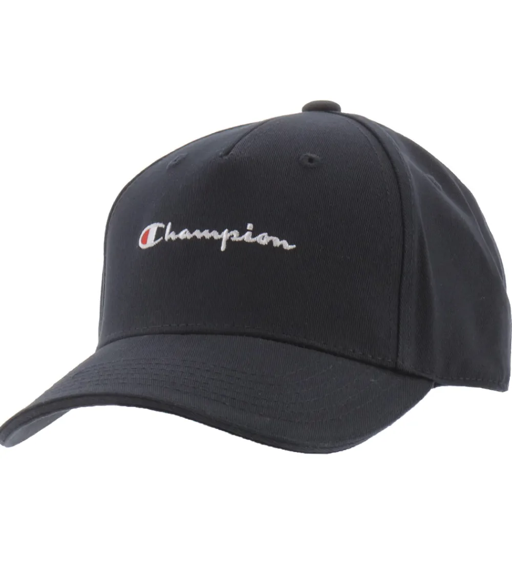 Smart Champion kasket i sort med et fint Champion-logo broderet på fronten i rød og hvid.