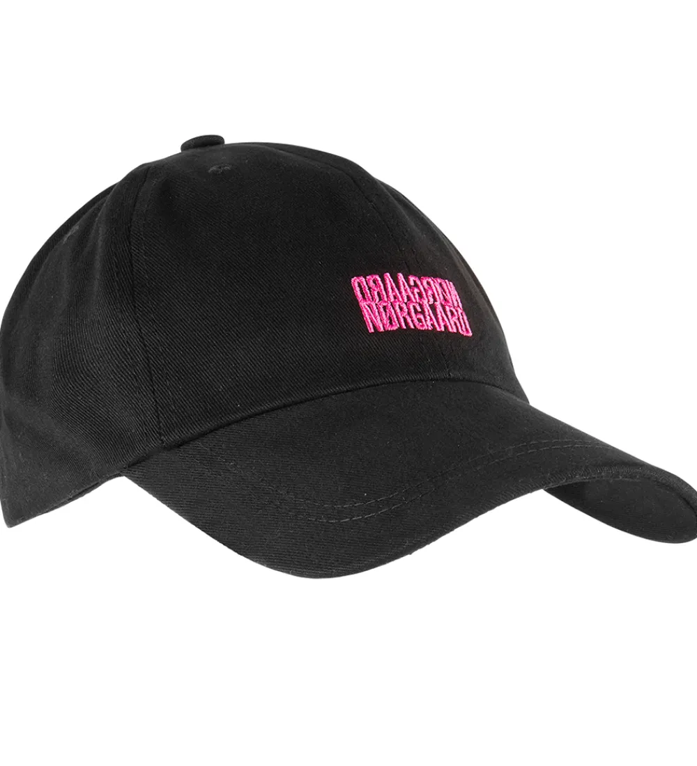 Smart Mads Nørgaard kasket i sort, og fortil står der “Nørgaard” broderet i pink.