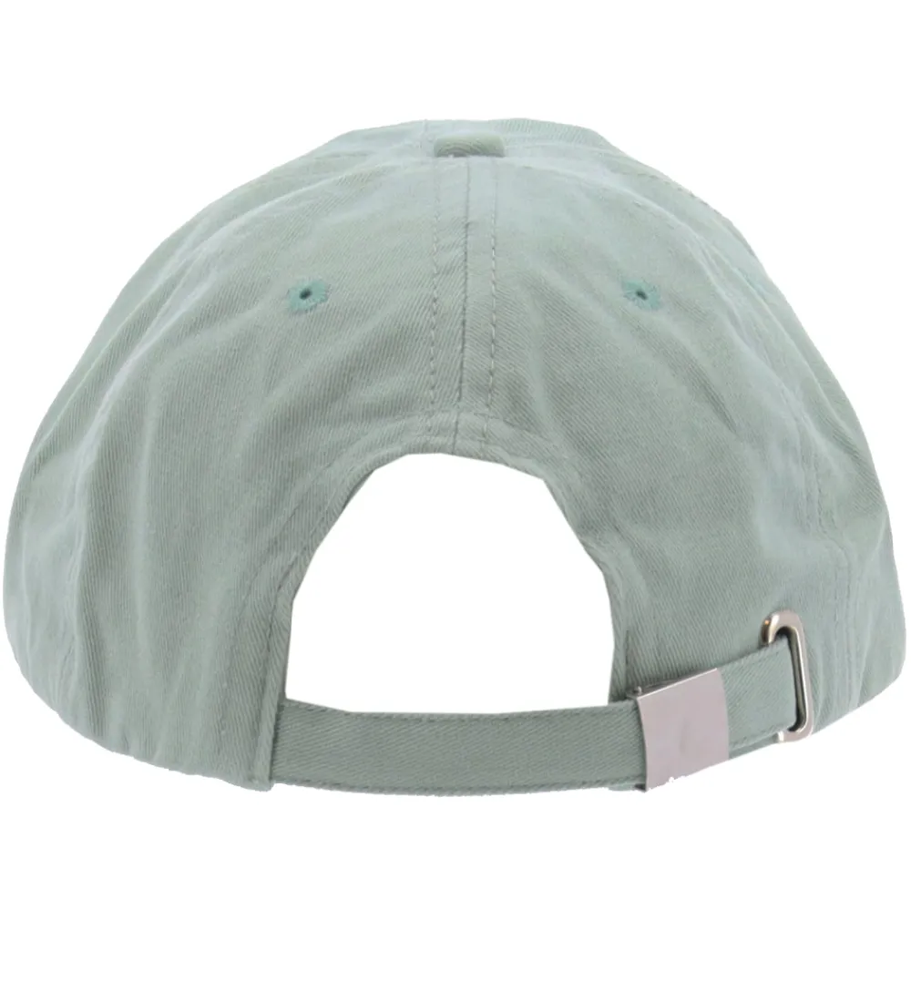 Skøn Mads Nørgaard kasket i støvet grøn, med et broderet logo fortil i neon orange.