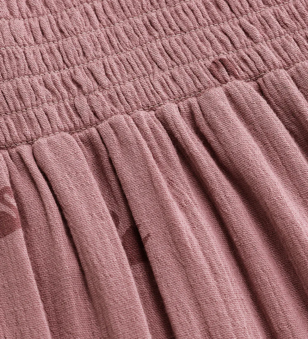 Elegant Minymo kjole i rosa med et alloverprint af svaner i en mørkere rosa nuance. Minymo kjolen er designet med smock ved brystet, og tre knapper i nakken, så den er let at få over hovedet. Den har lange ærmer og elastiske manchetter. Kjolen har en lækker musselinstruktur, som gør at den føles let at have på.