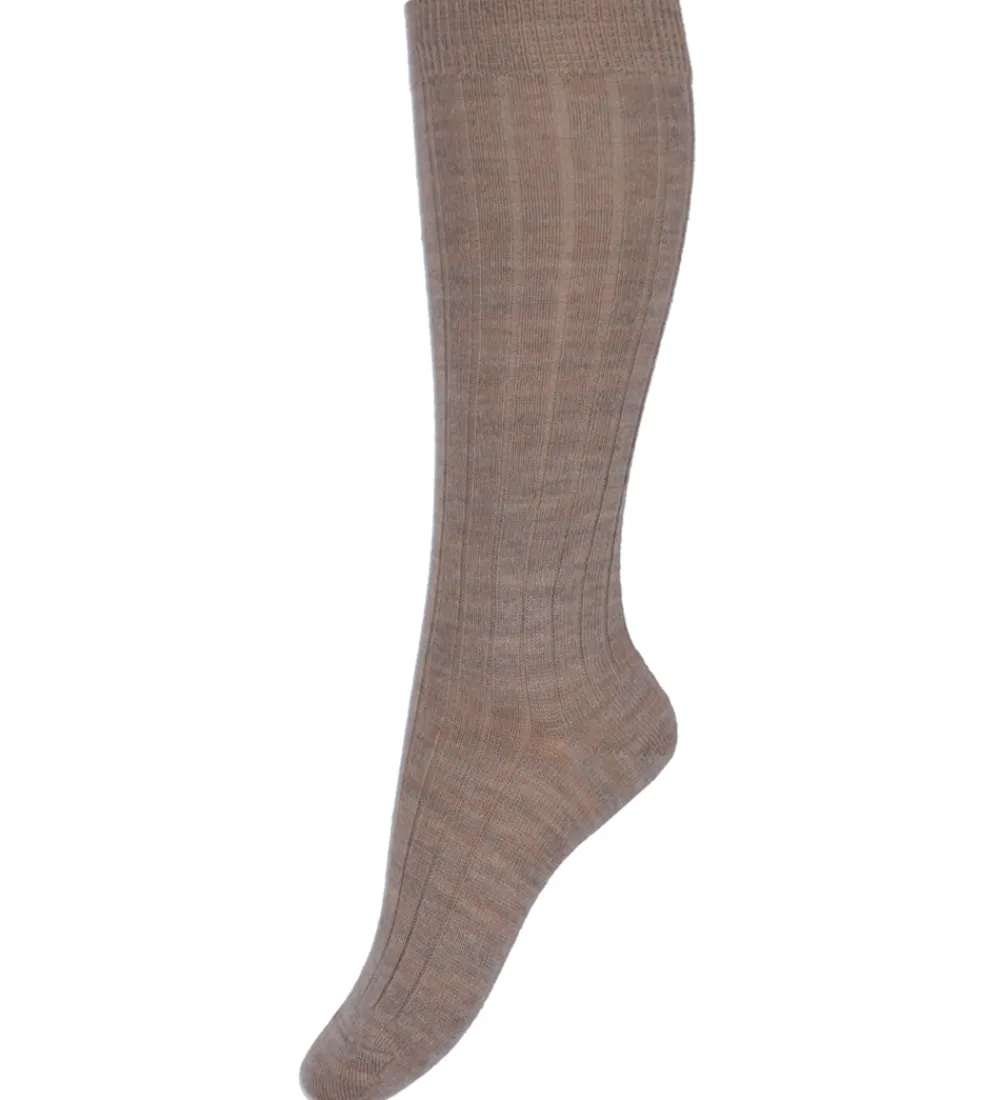 Lækre Condor knæstrømper i meleret beige med en flot ribstruktur.