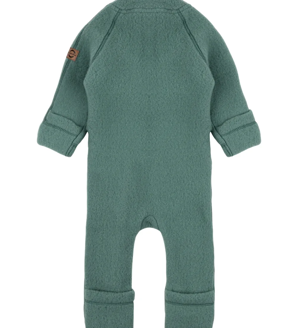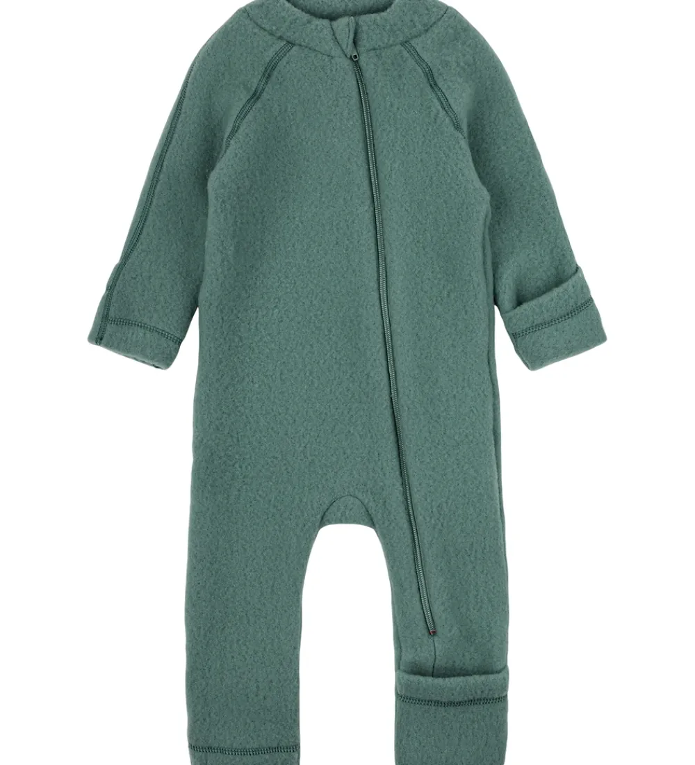 Flot Mikk-Line køredragt af filtet merinould i støvet grøn.