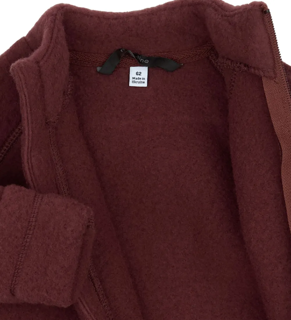 Flot Mikk-Line køredragt af filtet merinould i mørkerød.