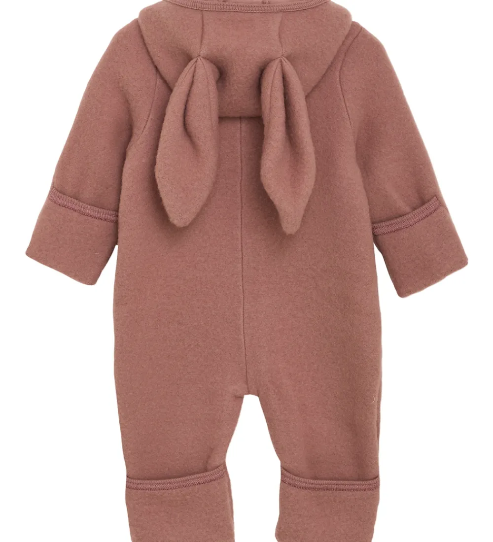 Dejlig Huttelihut køredragt i ensfarvet rosa af lunt uldfleece. I nakken er der en logopatch.