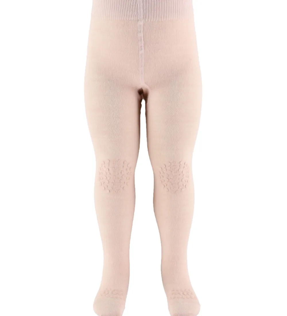 Fine GoBabyGo kravlestrømpebukser i pudderrosa, og de har gummidutter på og under foden samt på knæene.