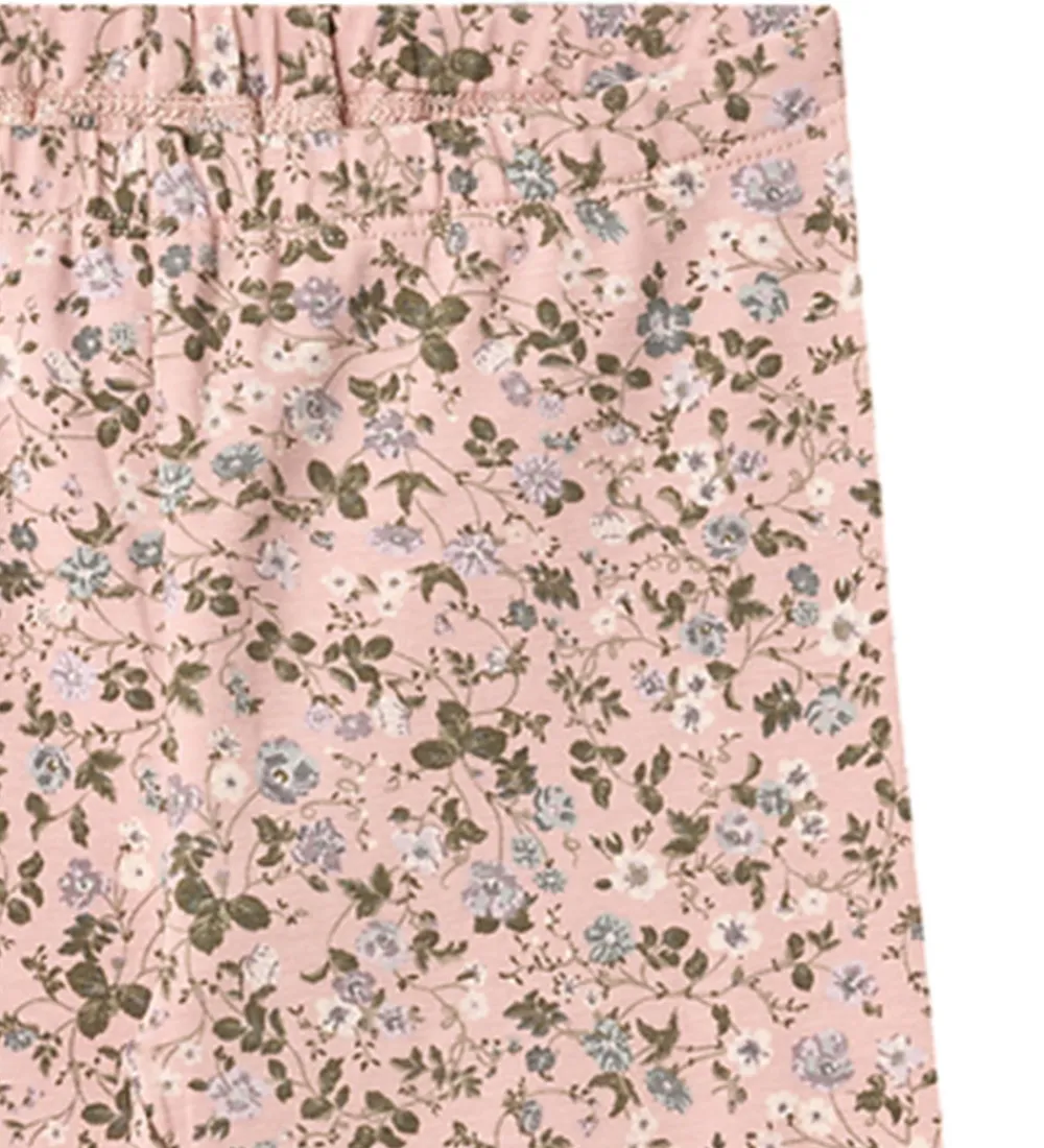 Flotte Wheat leggings i lys rosa med et allover småblomstret print i hvide, grønne og blå nuancer. Wheat leggingsene har en elastisk talje for en fleksibel pasform.