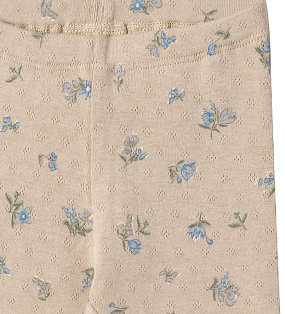 Søde Wheat leggings i en lys beige nuance med et delikat allover blomstermønster i blå og grønne toner. Wheat leggingsene er med elastik i taljen, der sikrer en god og behagelig pasform.