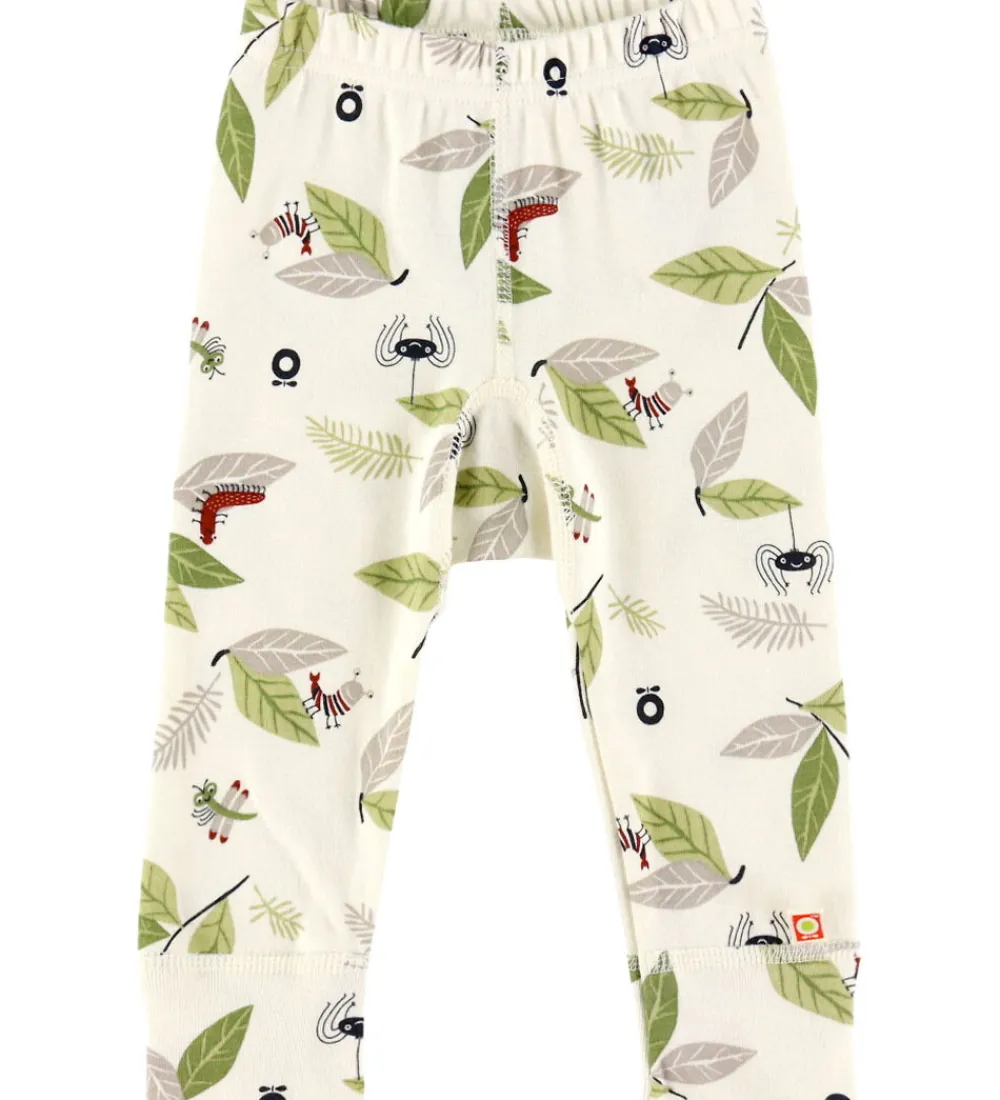 Charmerende Katvig leggings i hvid med et skønt print af grønne blade og forskellige insekter. Katvig leggingsene har en elastisk talje og ribkanter ved anklerne.