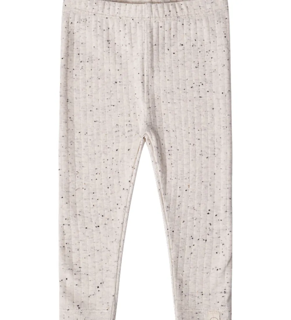 Stilfulde Thats Mine leggings i en meleret, lysebeige nuance med små, spredte prikker. Thats Mine leggingsene har en blød ribstruktur og en elastisk talje for optimal pasform.