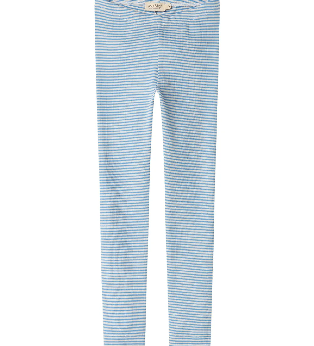 Fin MarMar leggings med blå og hvide striber i et elegant design. MarMar leggingsene har en elastisk talje for en god pasform.