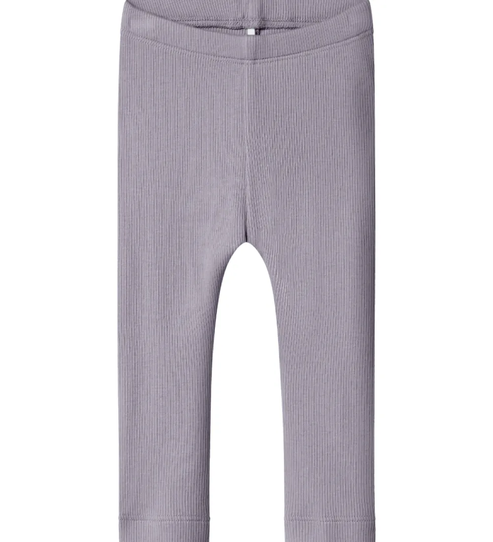 Stilfulde Name It leggings i lilla med flot ribstruktur. Name It leggingsene har en elastisk talje, der sikrer en god pasform.