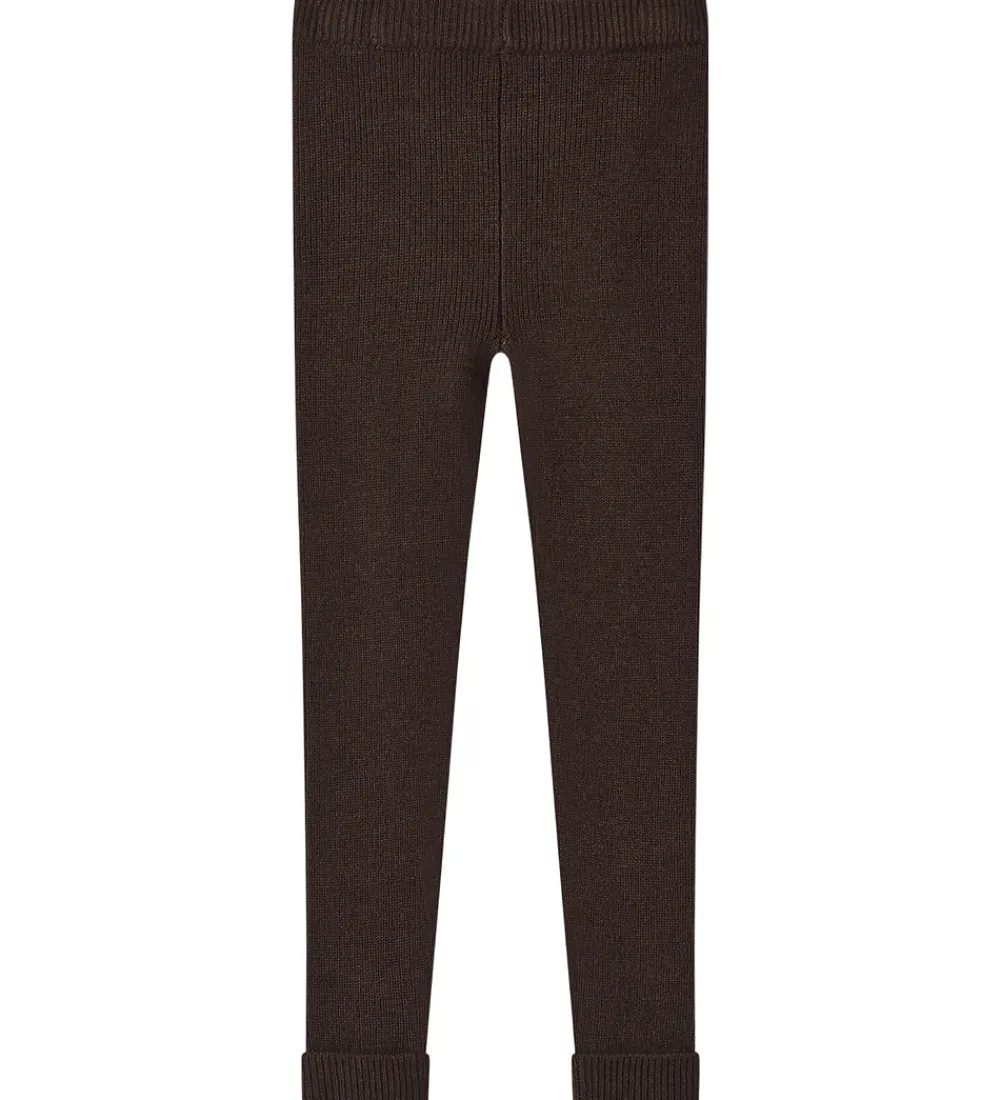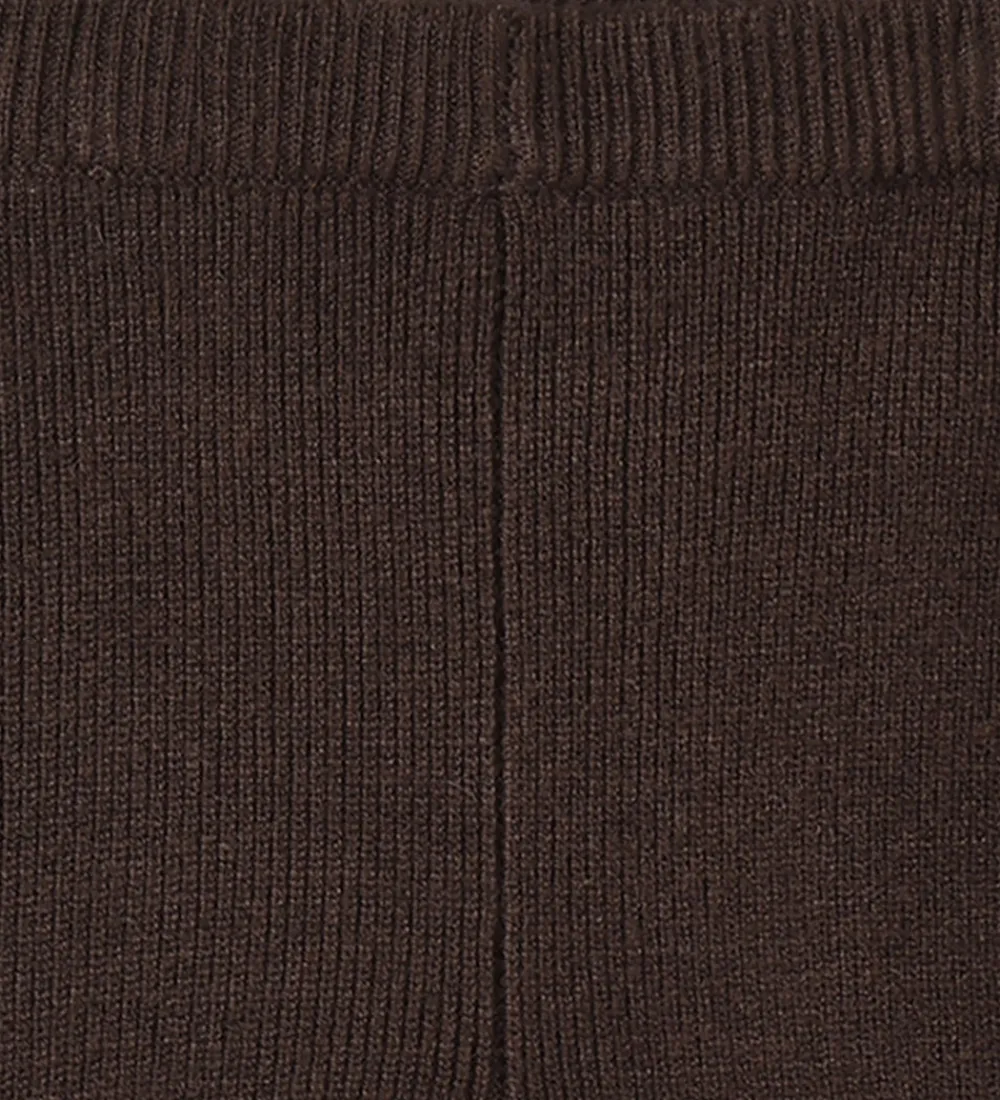 Skønne Fliink leggings i en dyb, brun farve med en strikket ribstruktur. Fliink leggingsene har en elastisk talje og opsmøgede benkanter, som giver et enkelt look.