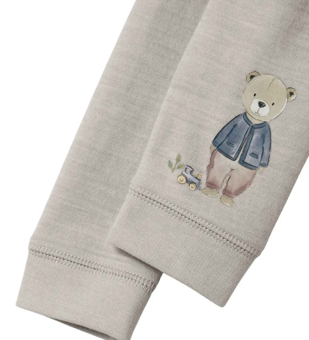 Charmerende Name It leggings i en meleret, lysebeige nuance med et sødt print af en bamse nederst på benet. Name It leggings har en elastisk talje, der sikrer en god pasform.