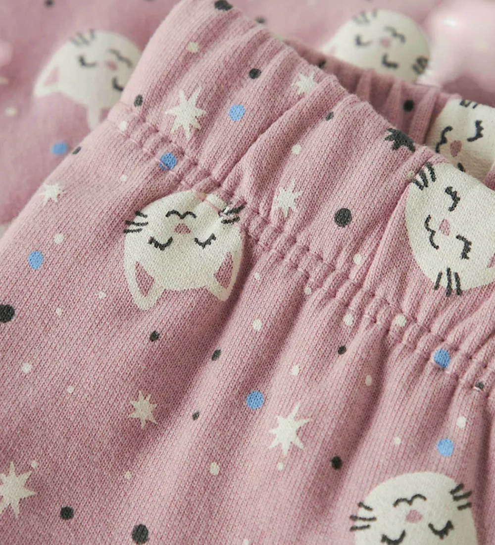 Charmerende Name It leggings i en støvet, rosa nuance med et mønster af søde kattehoveder og stjerner. Name It leggings er designet med en elastisk talje for en god pasform.