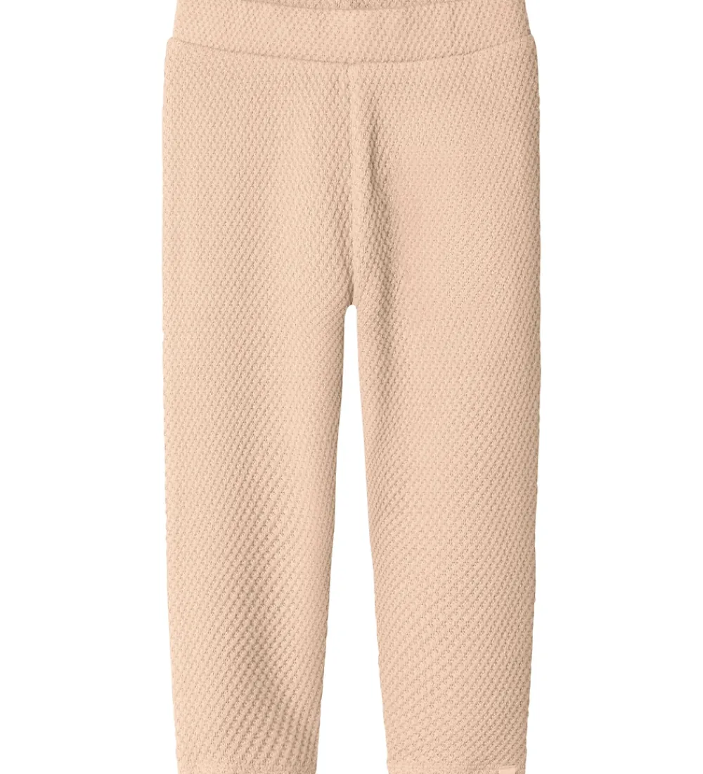 Behagelige bukser fra Lil’ Atelier i en lys rosa nuance. Bukserne fra Lil’ Atelier har en fin struktur med et let mønster over hele materialet. Taljen er elastisk, hvilket sikrer en passende pasform. Benene har en lige afslutning, som giver et enkelt og klassisk look.