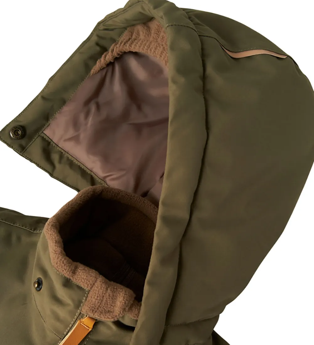 Smart Lil’ Atelier flyverdragt i mørk armygrøn. Flyverdragten har velplacerede refleksprint og -detaljer.