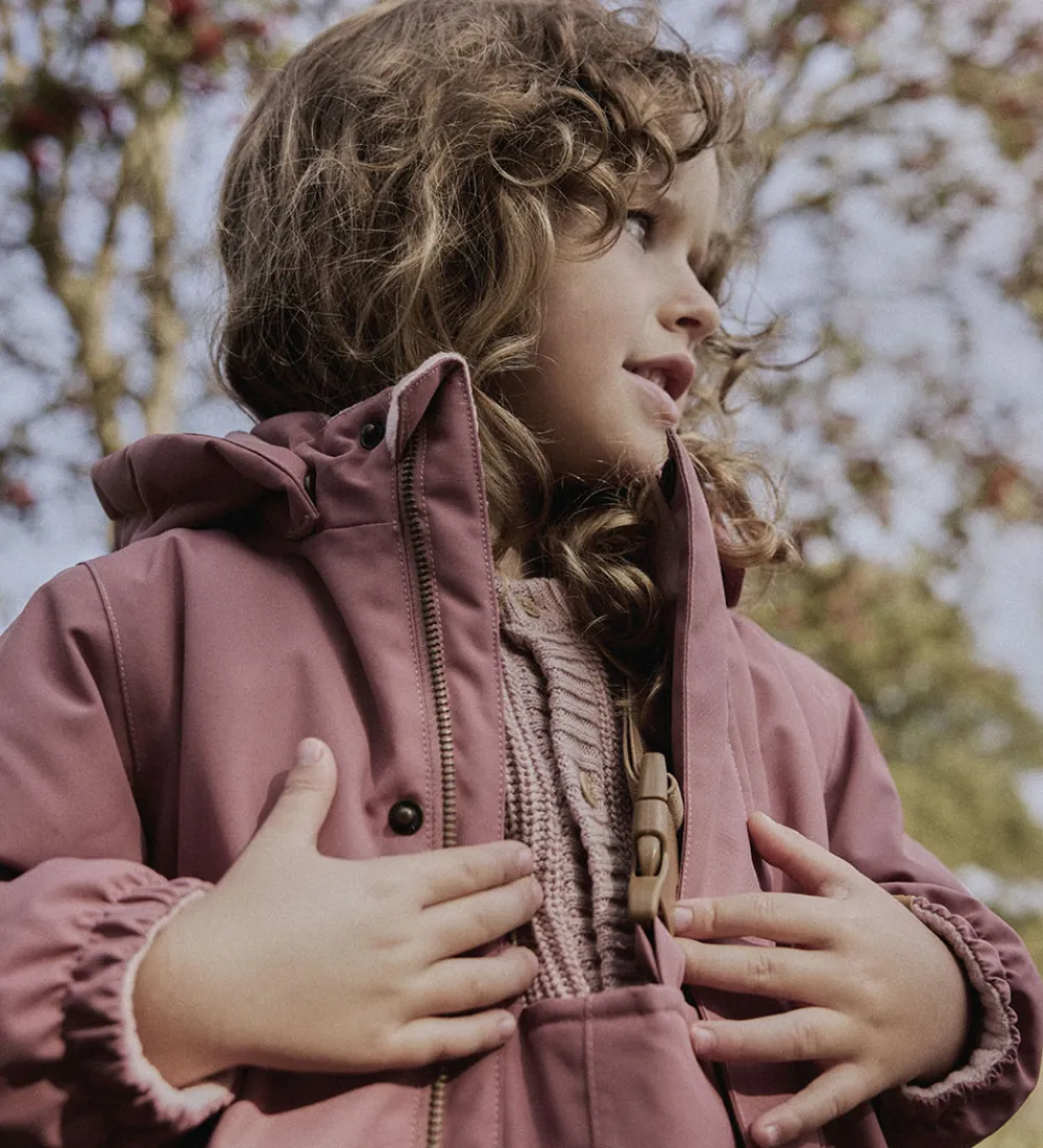Smart Lil’ Atelier vinterjakke i mørk rosa. Vinterjakken har velplacerede refleksprint og -detaljer.