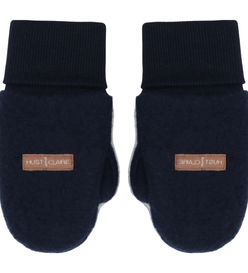 Flotte Hust and Claire luffer i en klassisk, mørkeblå farve. Hust and Claire lufferne har en praktisk, ombukket ribkant ved håndleddet. De er dekoreret med et stilfuldt logomærke foran.