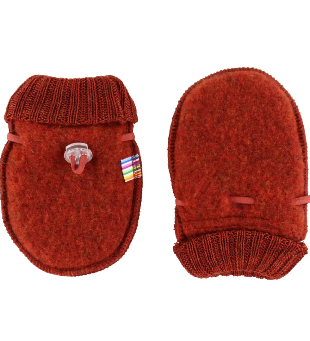 Joha lufferne er fremstillet af en kraftig, filtet merinouldskvalitet, der kan holde barnets hænder dejlig varme på de kølige dage.