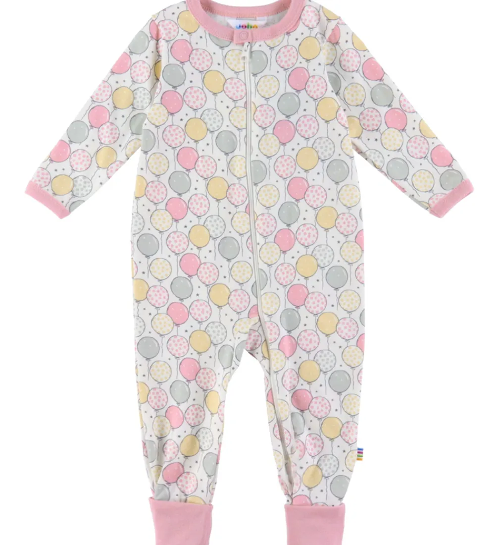 Skøn Joha natdragt i hvid med farverige prikker i rosa, grøn, gul og glimmer prikker. Natdragten har lynlås og passer perfekt til en behagelig nat.