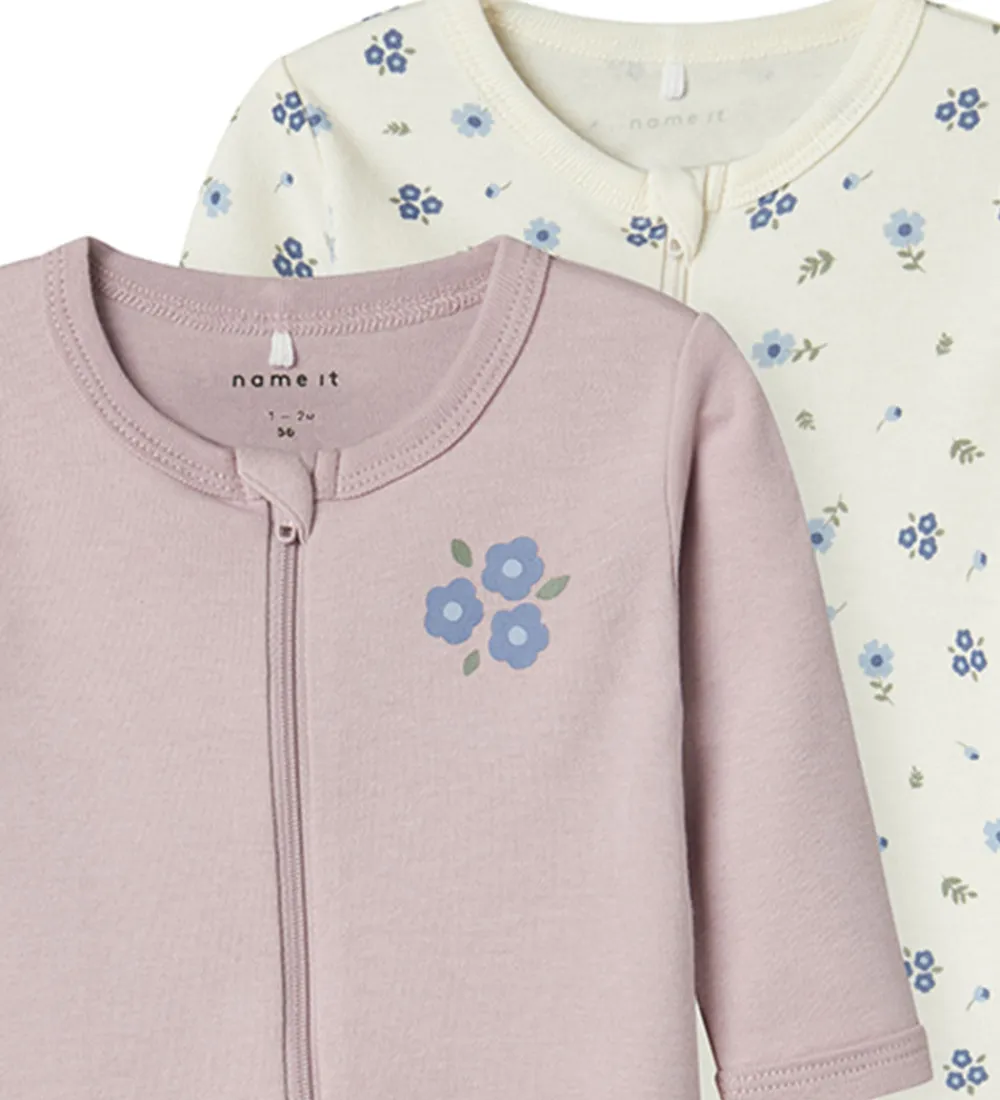 Model: NBFNightsuit 2P Zip FF Jet Flower Noos, Style: 13241755, Farve: Jet Stream