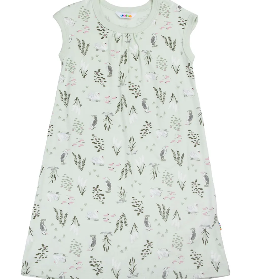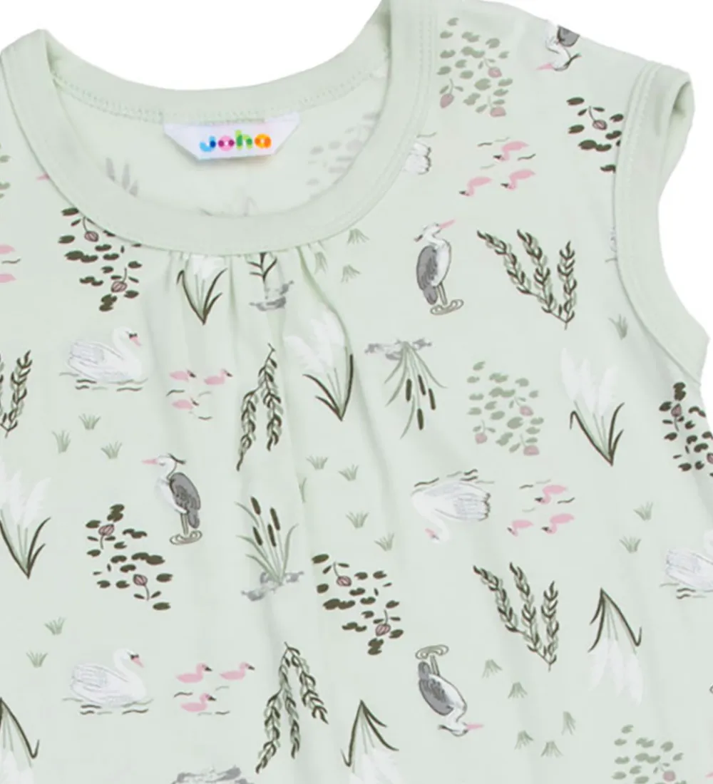 Skøn Joha natkjole med korte ærmer i en lys grøn farve med et fint mønster af planter og dyr. Natkjolen har en let skæring og en løs pasform, der giver komfort hele natten.