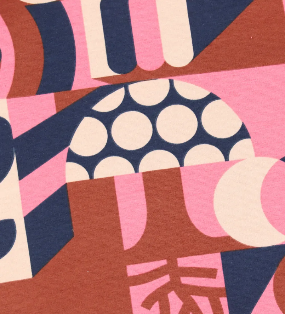 Fint Danefæ nattøj bestående af en langærmet natbluse med farverigt mønster samt et par navyblå natbukser. Natblusen har en rund halsudskæring og lange ærmer. Natbukserne har en god elastik i taljen og brede ribkanter ved anklerne.