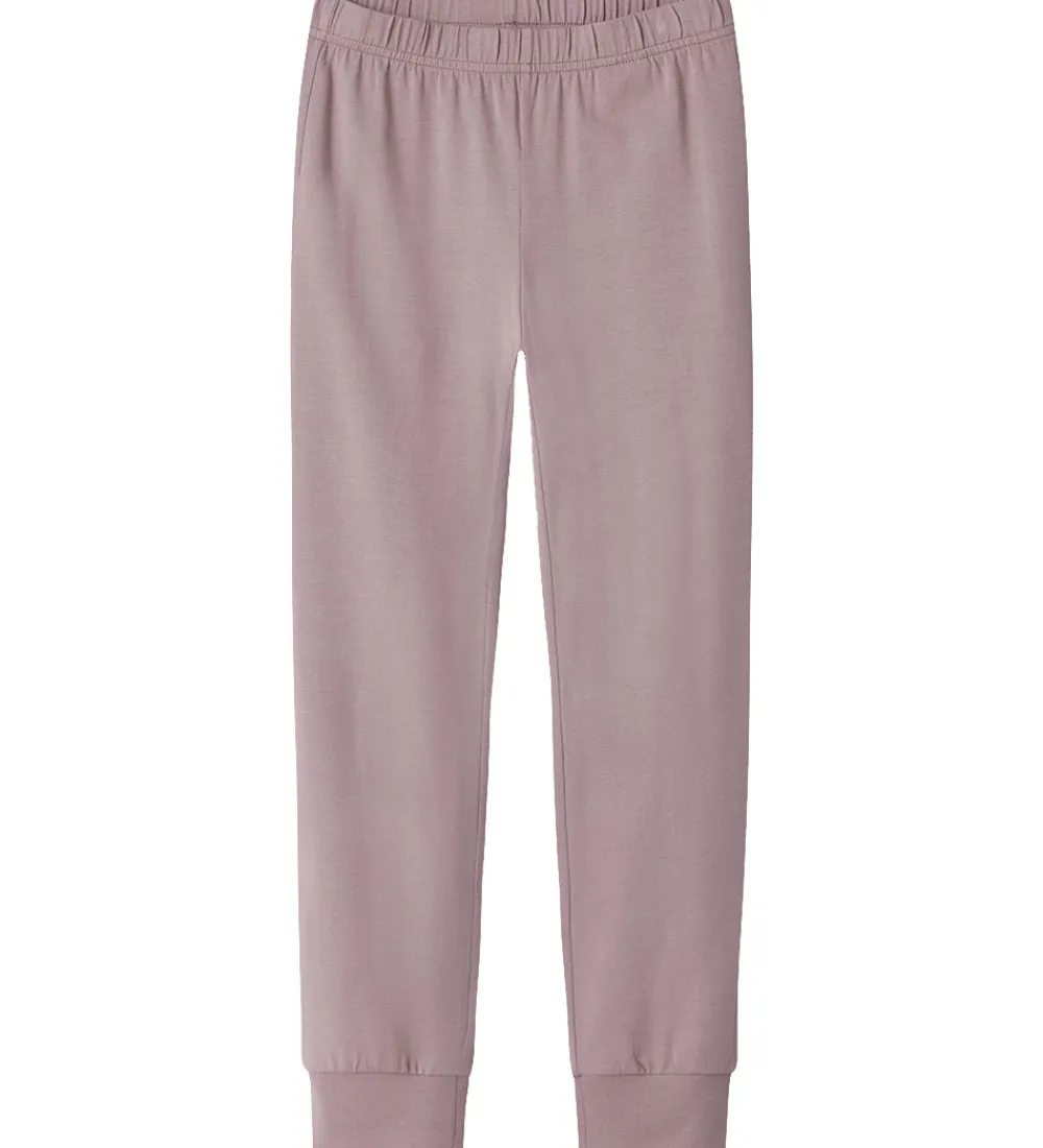 Skønt Name It nattøj, som er 2-delt med en natbluse i lys losa med et sødt sløjfeprint i forskellige farver samt et par natbukser i en blød rosa farve, der sikrer en god nat.