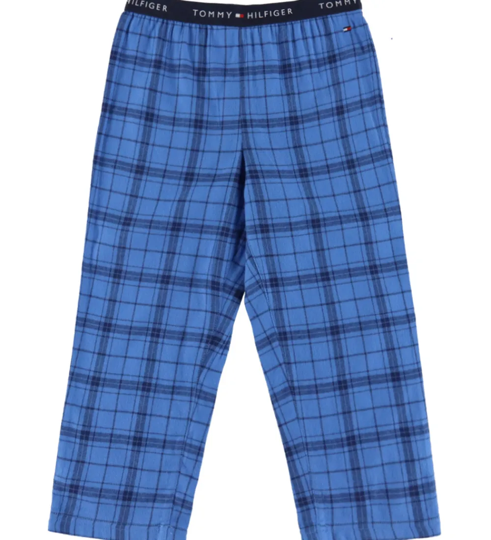 Flot Tommy Hilfiger nattøj med en langærmet bluse i navy og par natbukser i blå med et ternet mønster i navy. Natblusen har lange ærmer og en smal ribkant i halsåbningen. Natbukserne har lange bukseben, og i livet er der en bred elastikkant. Natbukserne er lavet af blødt flonel.