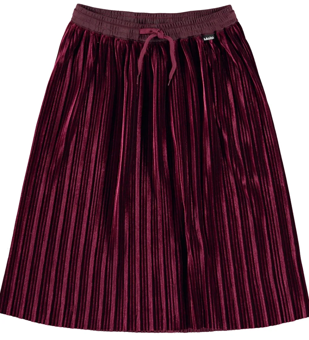 Elegante detaljer kendetegner denne nederdel fra Molo. Den har en flot, plisseret struktur og kommer i en dyb, rød farve, der giver et stilfuldt look. En elastisk talje sikrer en god pasform og komfort hele dagen.