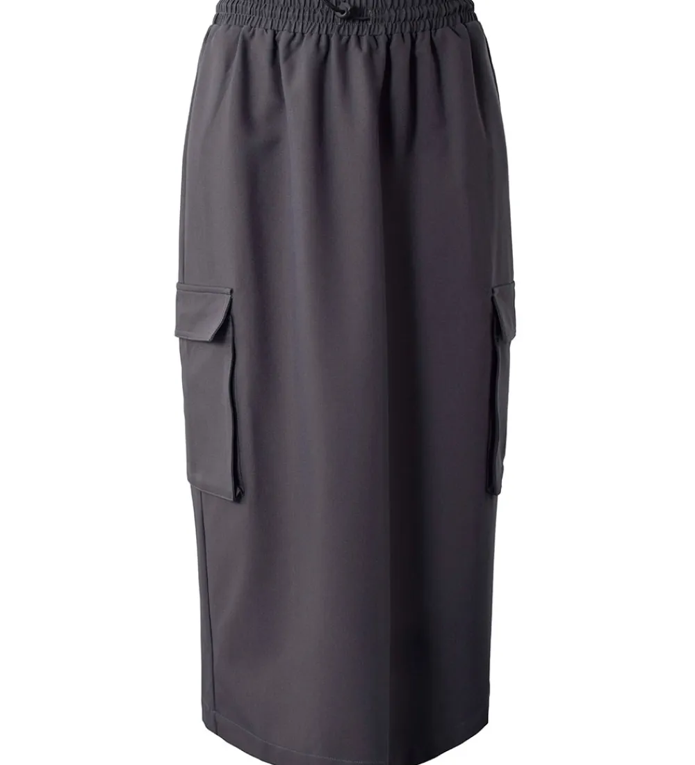 Stilfuld Hound nederdel i en mørk grå nuance med praktiske lommer på siden. Nederdelen har en elastisk talje for en behagelig pasform, og den er ideel til forskellige anledninger.