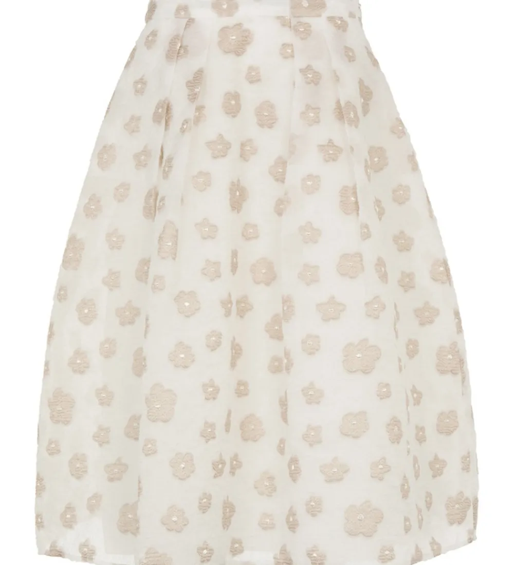 Elegant Emporio Armani nederdel i hvid med flot struktur og med et alloverprint af blomster i beige.