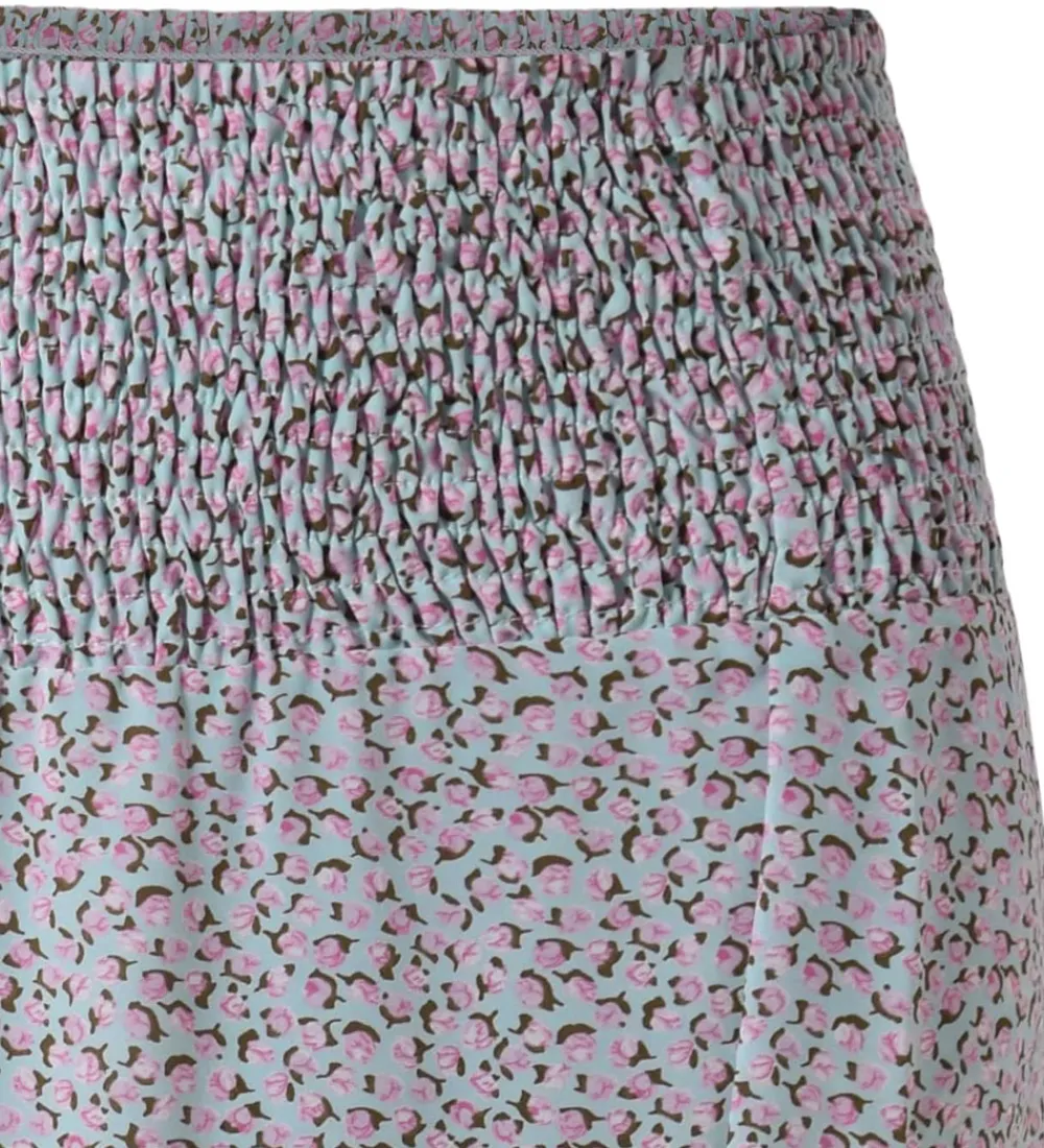 Fin Hound nederdel i lyseblå med et allover blosmterprint i rosa nuancer samt mørkegrøn.