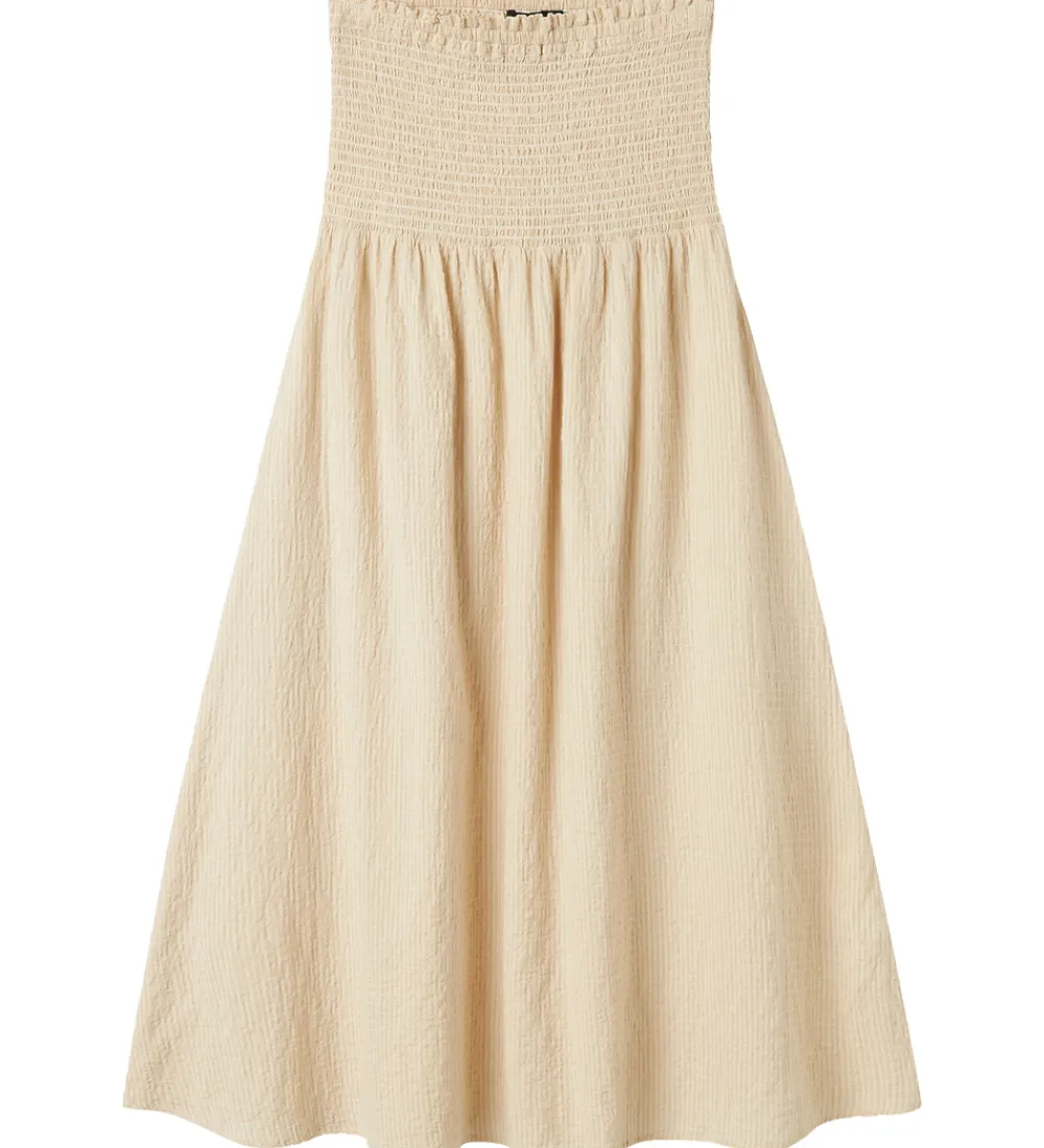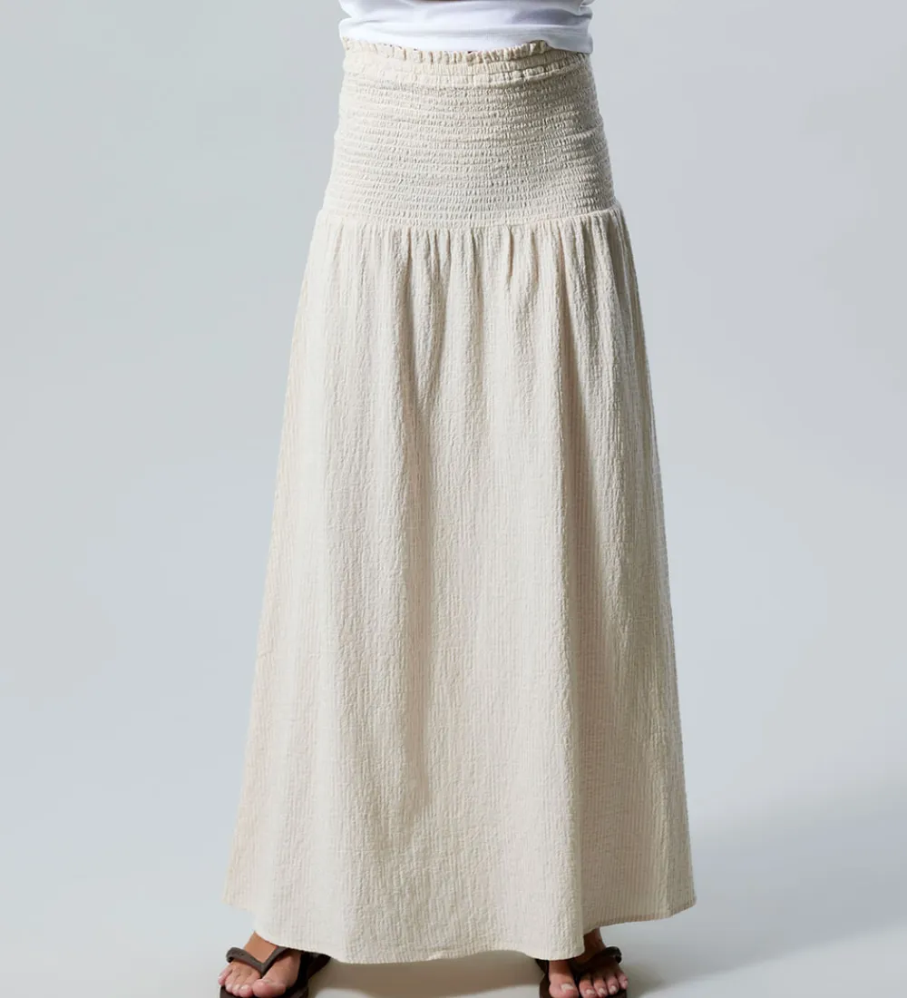 Flot LMTD nederdel med fine, beige og cremehvide striber. LMTD nederdelen har en smuk smock-talje, hvilket giver en behagelig pasform. Nederdelen har en enkel og struktureret overflade og falder let og elegant.
