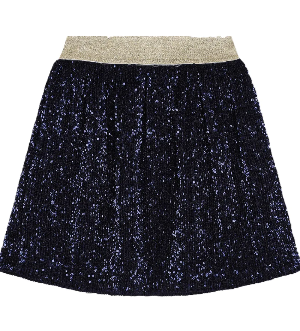 Smuk Billieblush nederdel i navyblå med en flot plisseret struktur, samt navyblå palietter på hele nederdelen.