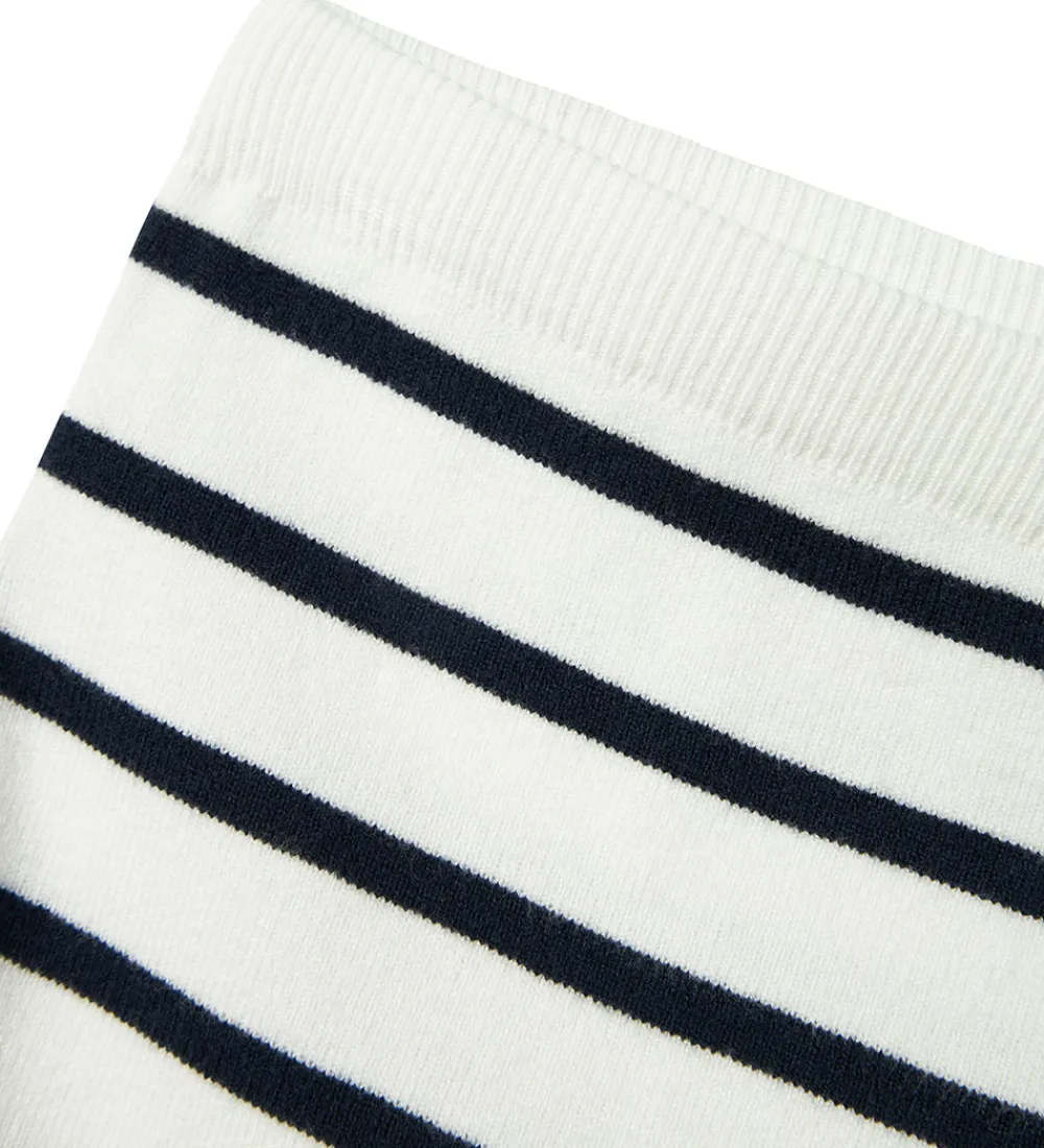 Smart Name It nederdel i en hvid nuance med striber i navyblå nuance. Nederdelen har en tætsiddende pasform, der giver god bevægelsesfrihed og stil til enhver anledning.