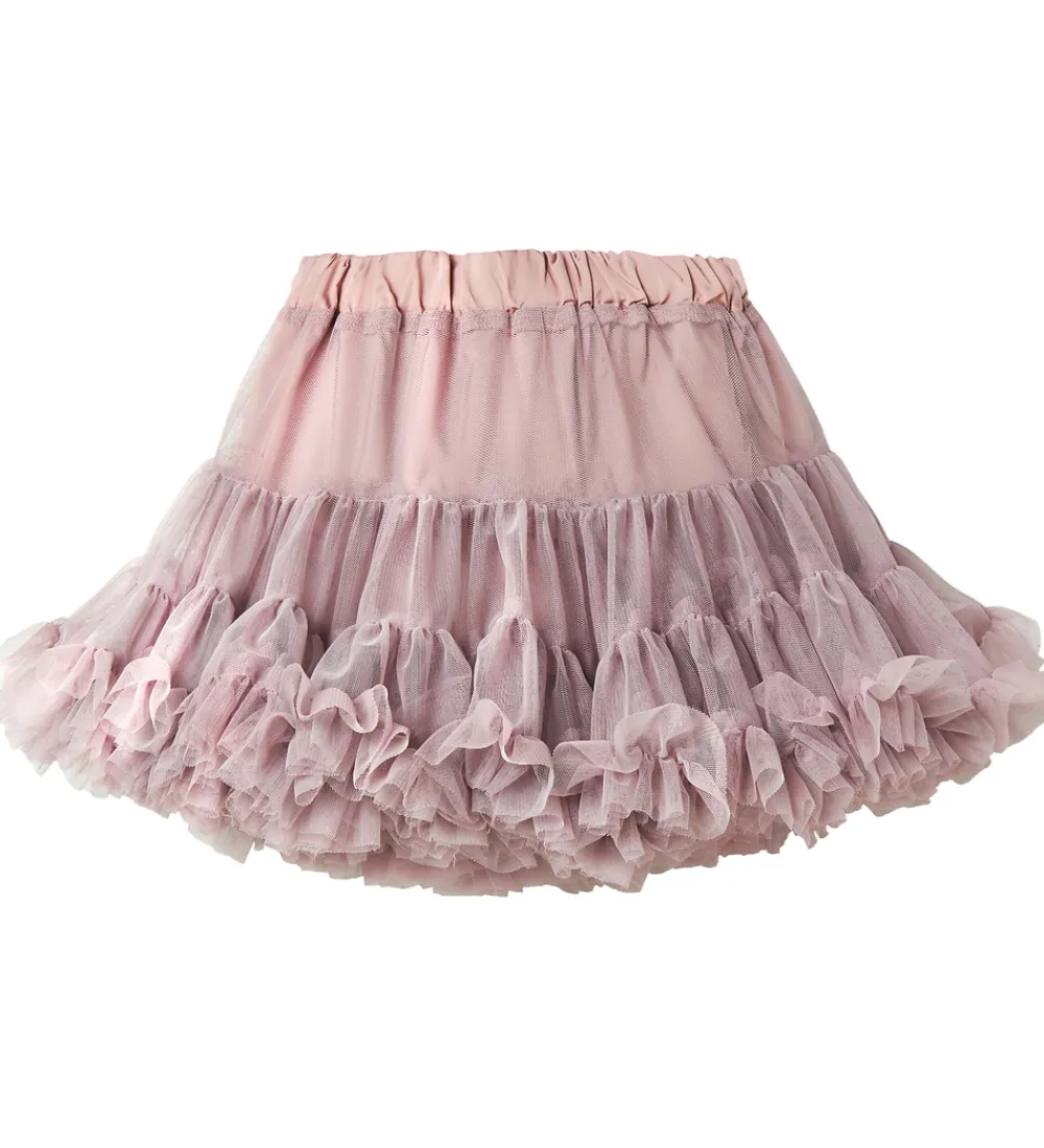 Elegant Name It nederdel i en sart lyserød nuance. Name It nederdelen har en lagdelt struktur i tyl med en indvendigt justerbar elastiskkant i livet, der sikrer en god pasform.