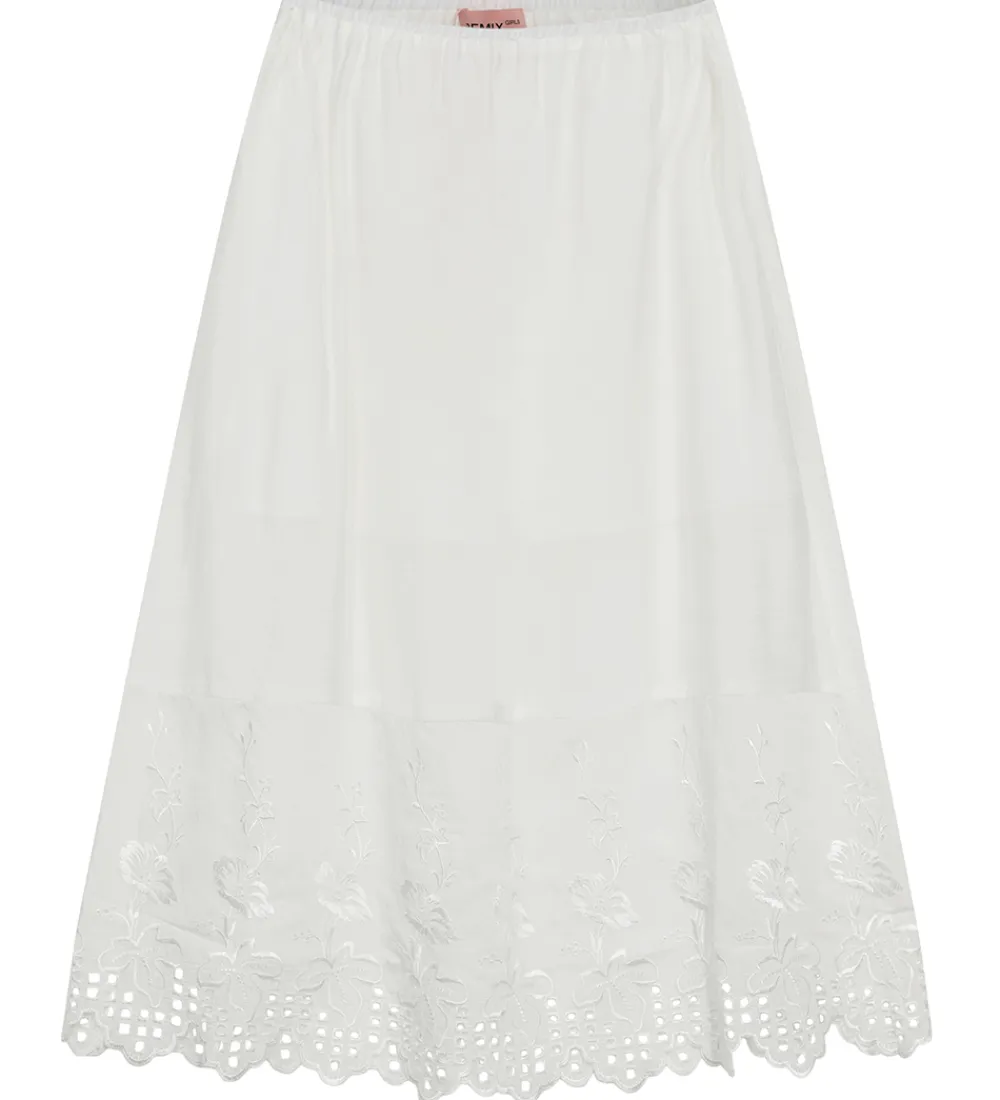Flot Designers Remix nederdel i ensfarvet hvid med broderet blomstermønster på bunden.