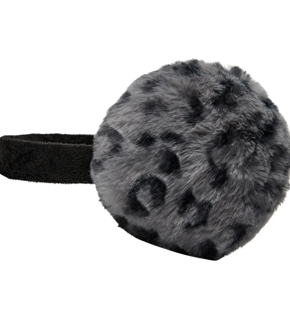 Lækre Sofie Schnoor ørevarmere med leopardprint af imiteret pels i sort og grå. Ørevarmerne består af plys, som giver dem et elegant udseende. Bøjlen er også betrukket med samme materiale, hvilket sikrer et ensartet look.