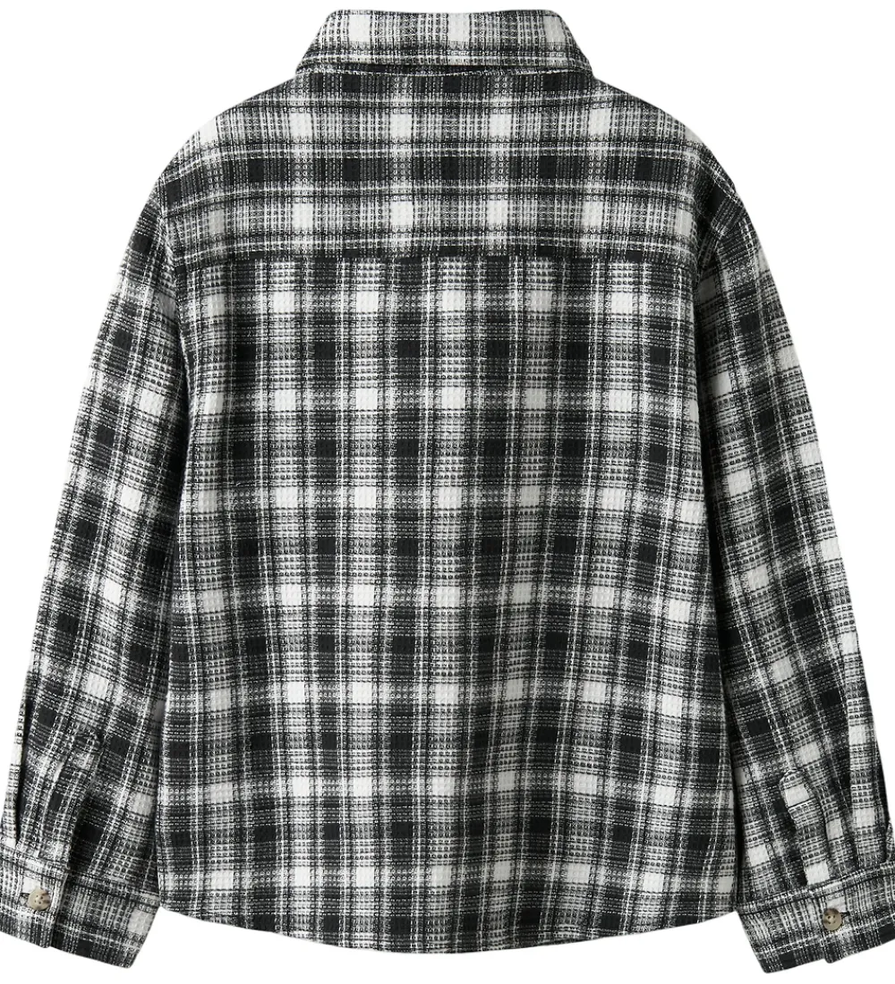Stilren Name It overshirt med lange ærmer og et klassisk, ternet mønster i sort og hvid.