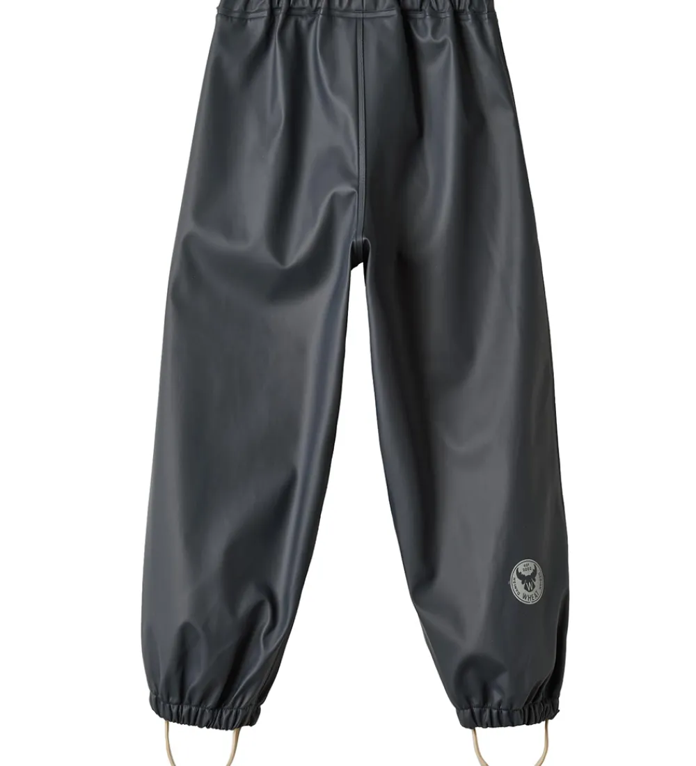 Wheat regnbukserne har elastiskkant i livet. Buksebenene har elastikkanter om anklerne, og der er aftagelige, justerbare gummistropper til at sætte under fodtøjet.