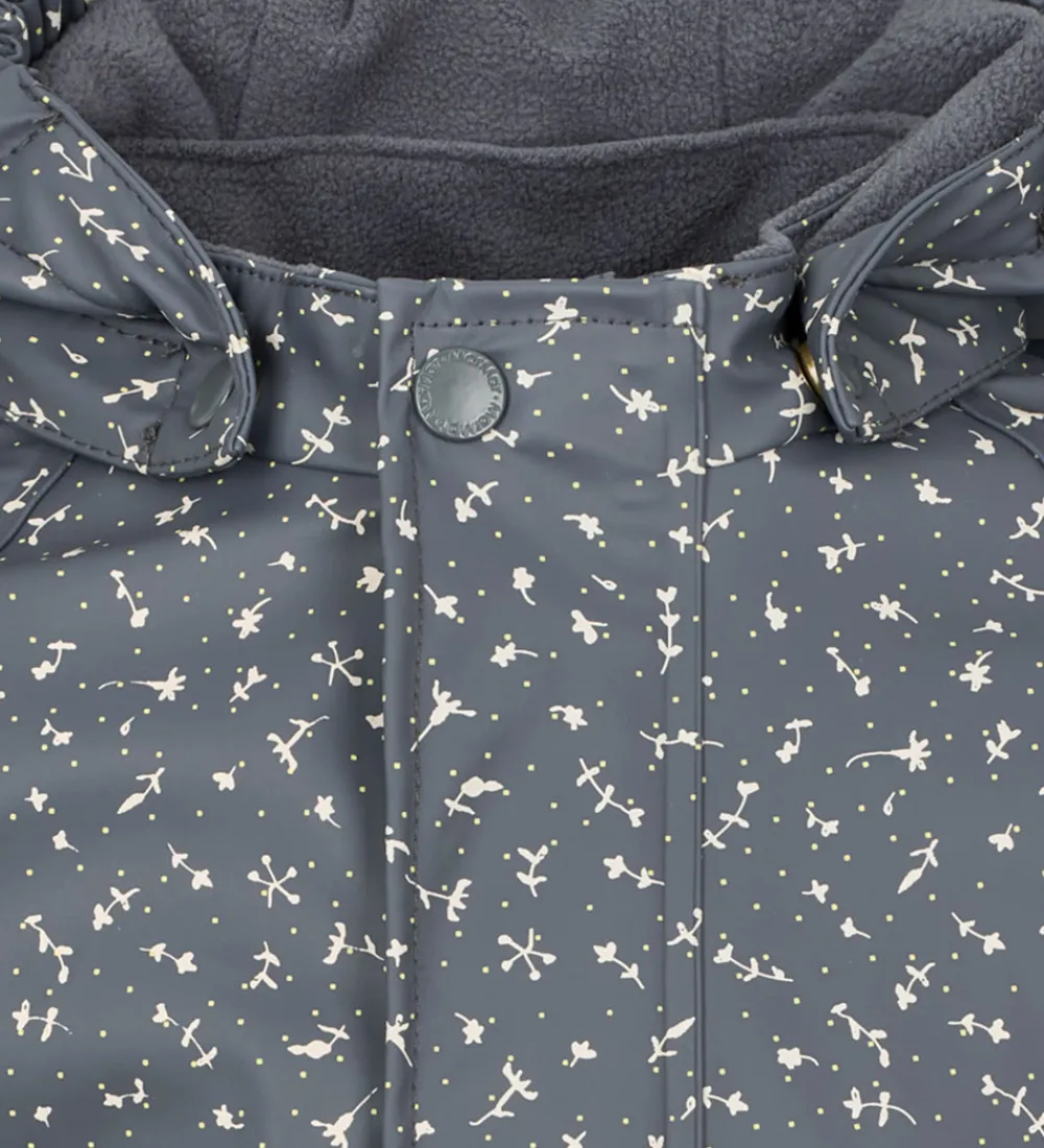 Fin MarMar regndragt i navy PU med et cremefarvet blomsterprint.