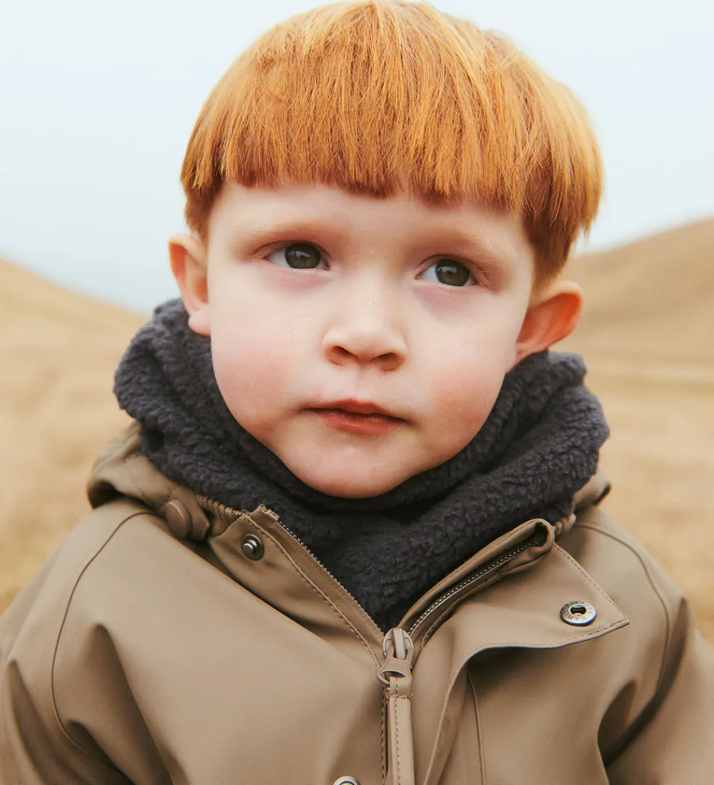 Regndragten har et brunternet termofor, så barnet holder varm, samtidig med at den er behagelig.