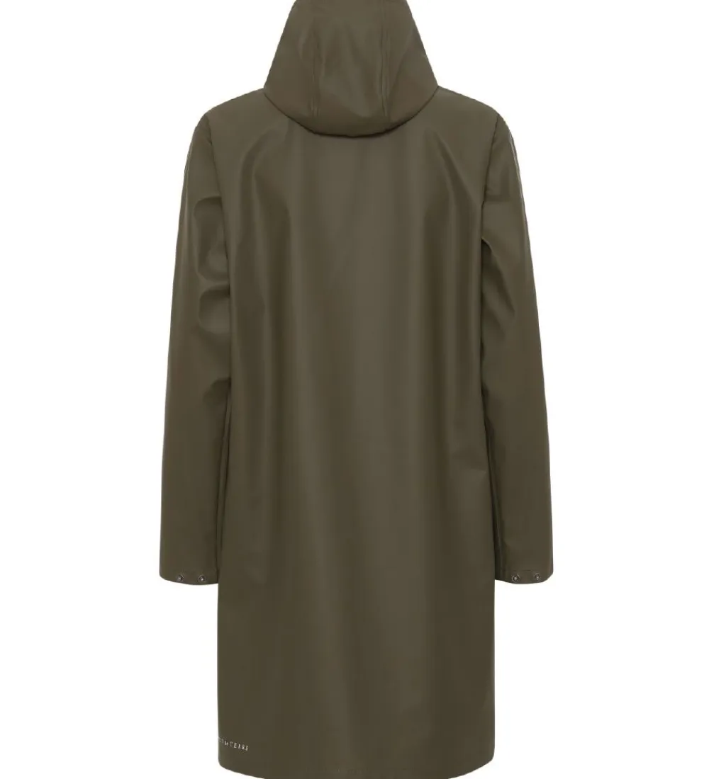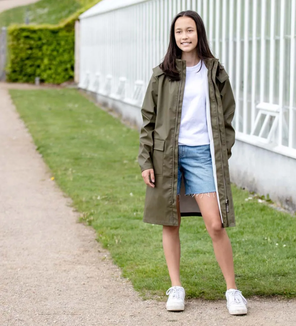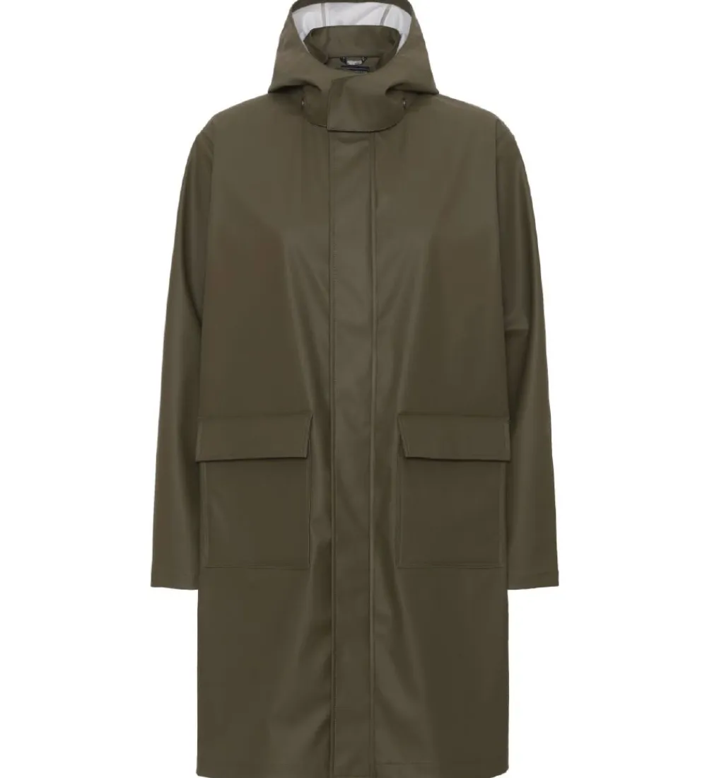 Flot Ver de Terre regnfrakke i ensfarvet armygrøn.