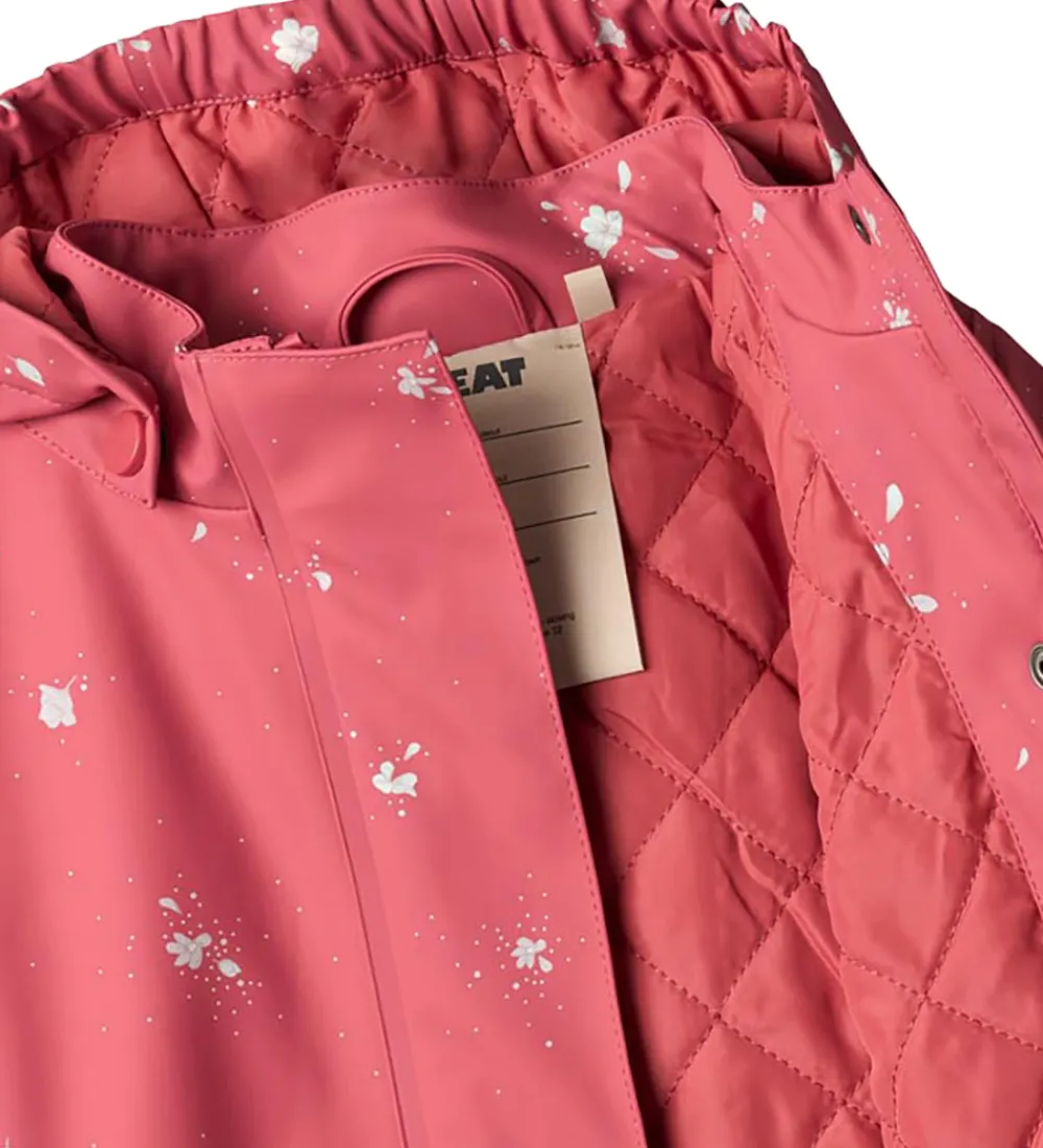 Fin Wheat regnjakke af PU af PU i rød med et lyst print af små blomster.