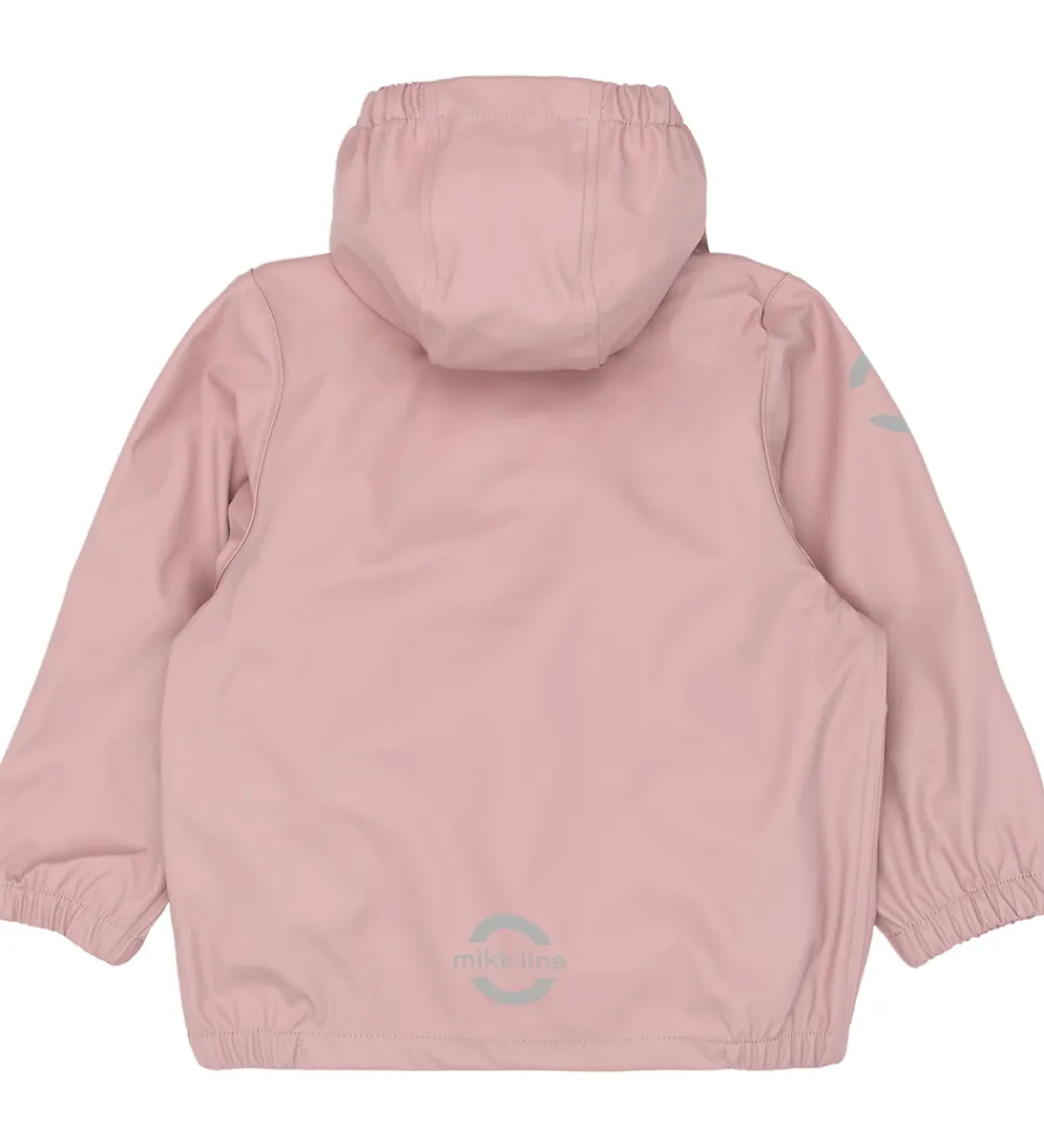 Fint Mikk-Line regntøj bestående af en regnjakke og et par regnbukser i ensfarvet, rosa PU.
