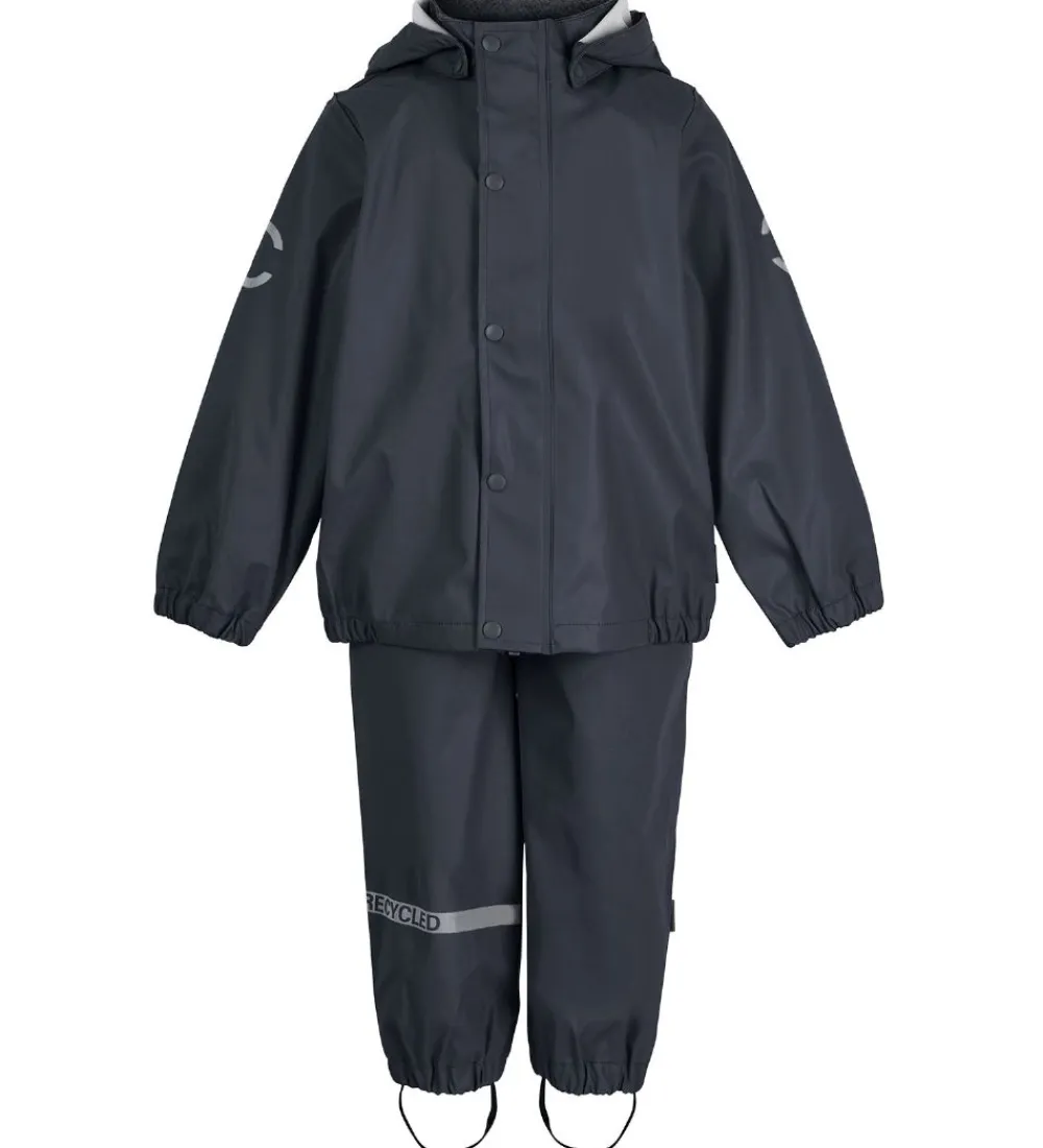 Flot Mikk-Line regntøj bestående af en regnjakke og et par regnbukser i ensfarvet, navy PU.
