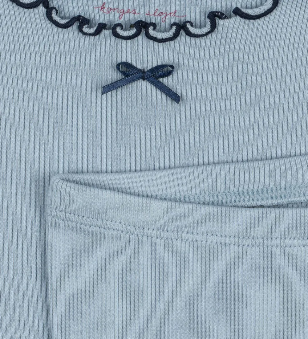 Elegant sæt fra Konges Sløjd i en blød, blå nuance med ribstruktur.