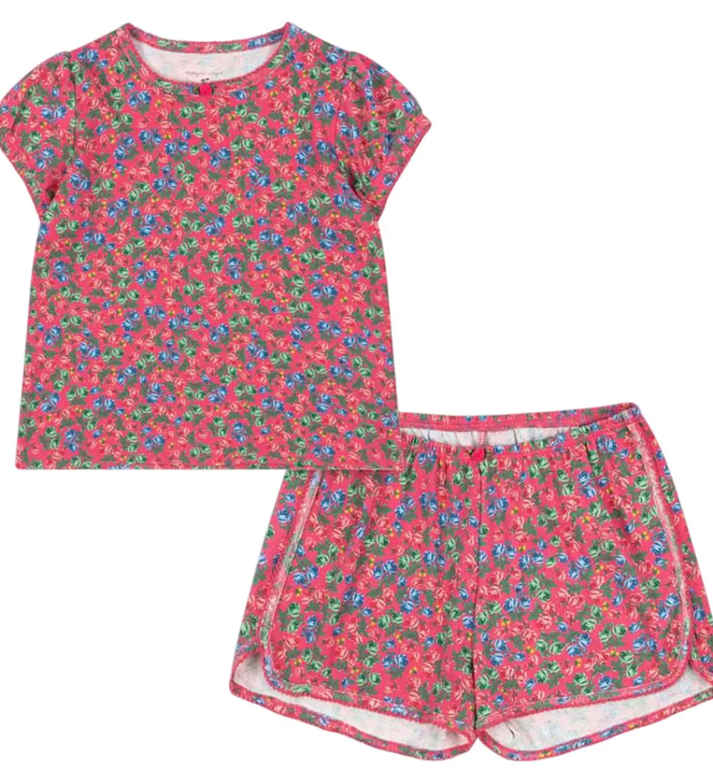 Farverig Konges Sløjd sæt bestående af en t-shirt og et par shorts med et iøjnefaldende blomstermønster i røde, blå og grønne nuancer.