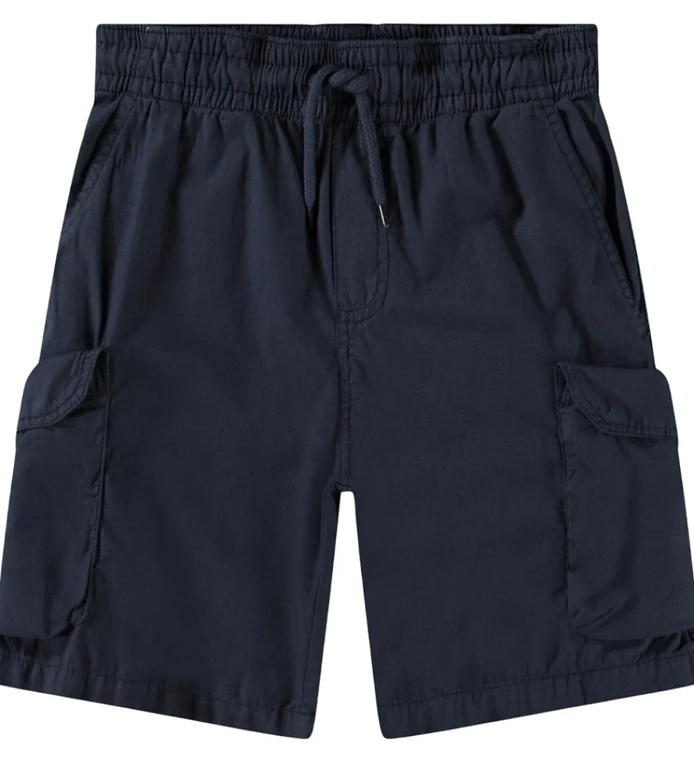 Praktiske Molo shorts i ensfarvet navy i en fastvævet kvalitet. Molo shorts har en elastisk talje med snøre og rummelige cargolommer på siderne af buksebenene. Fortil er der skrå lommer, og bagpå sidder der to snydelommer.